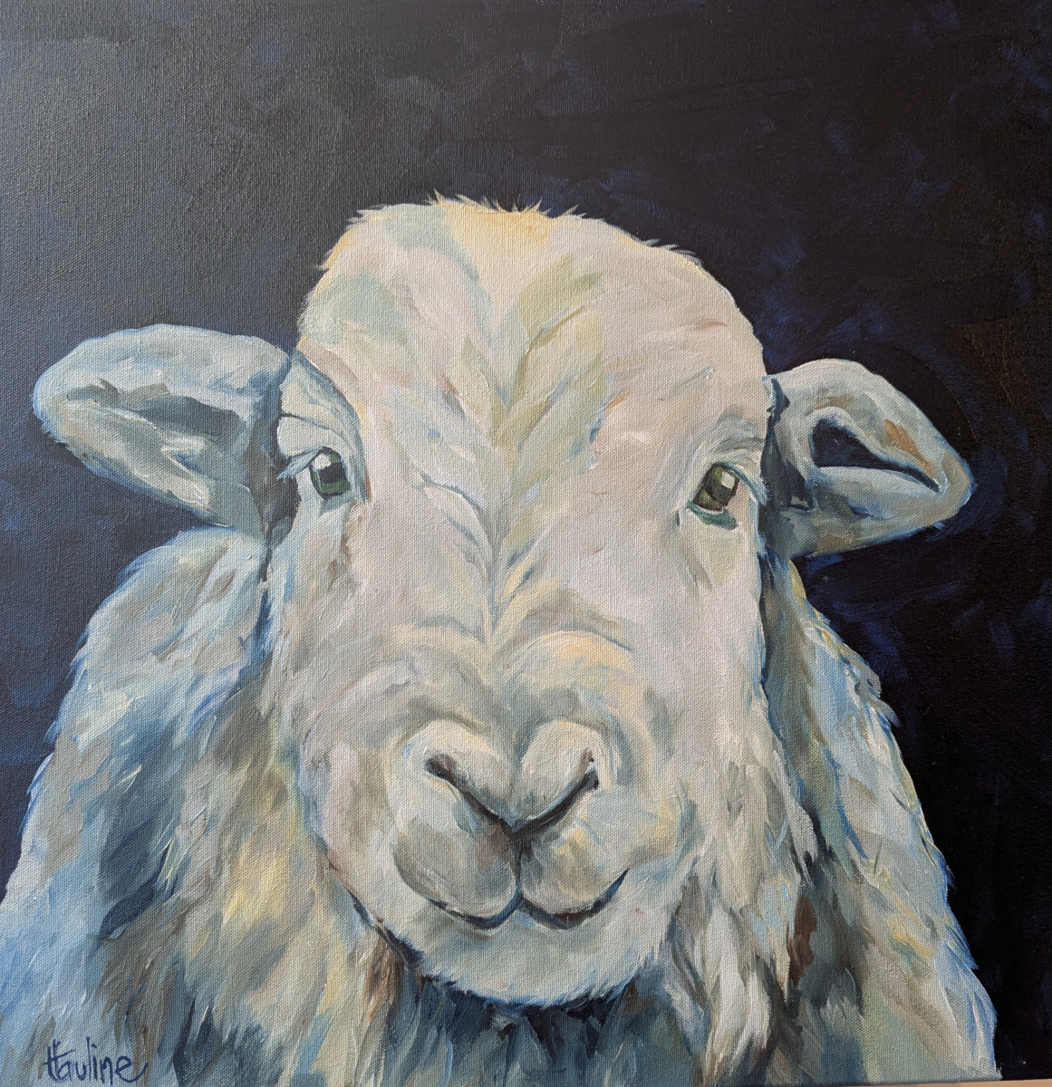 The Herdwick sheep is painted in oil on to a primed canvas stretched on a deep frame, painted over the edges
